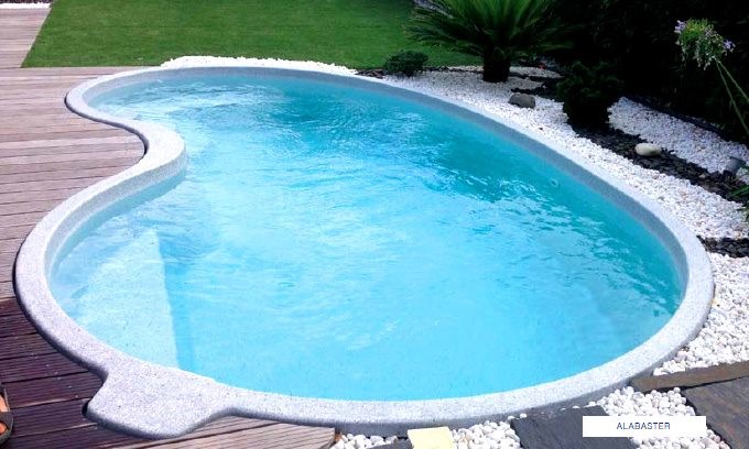 En forme d’haricot, cette piscine de petites dimensions s’adapte parfaitement à un petit espace.